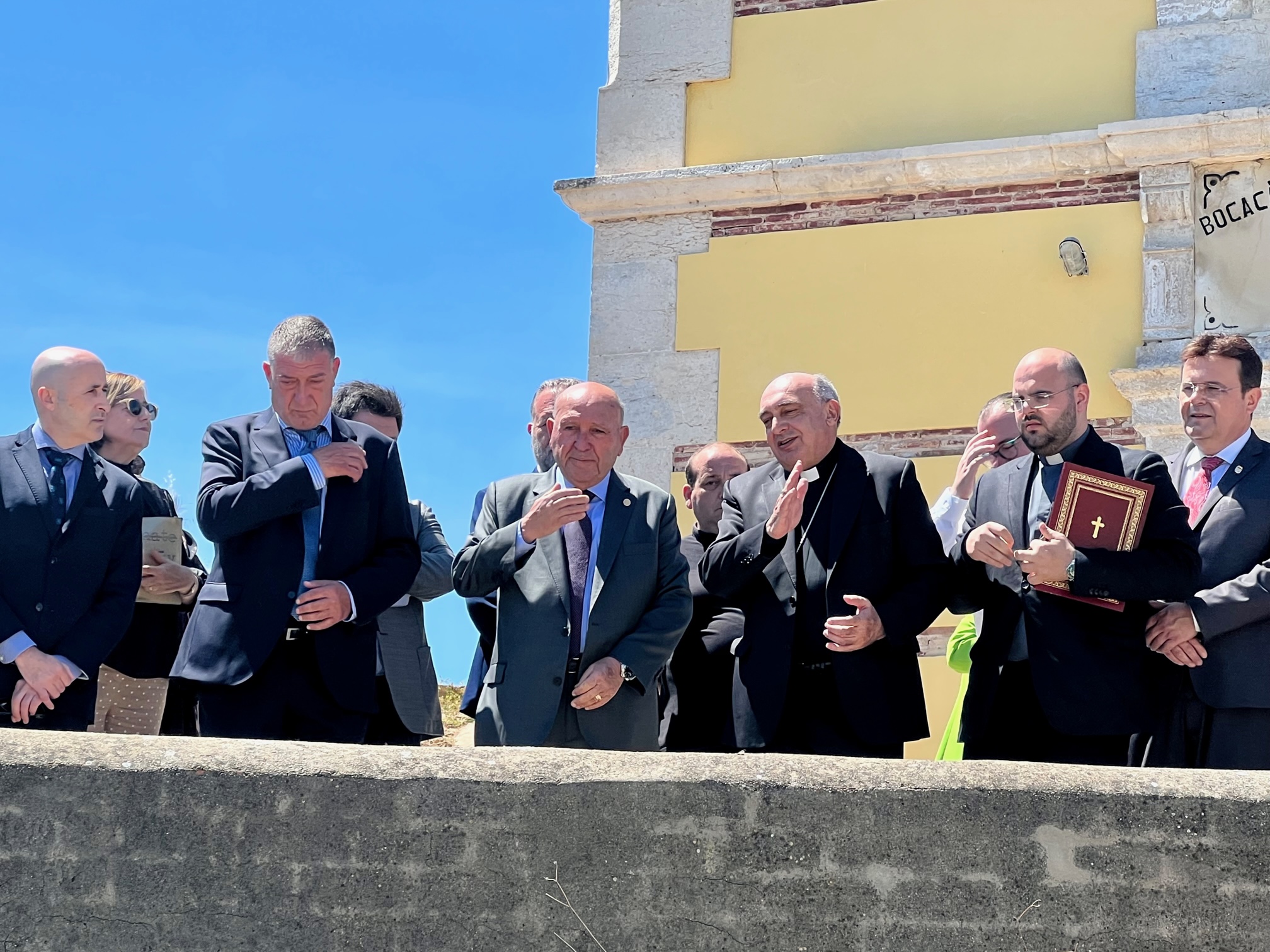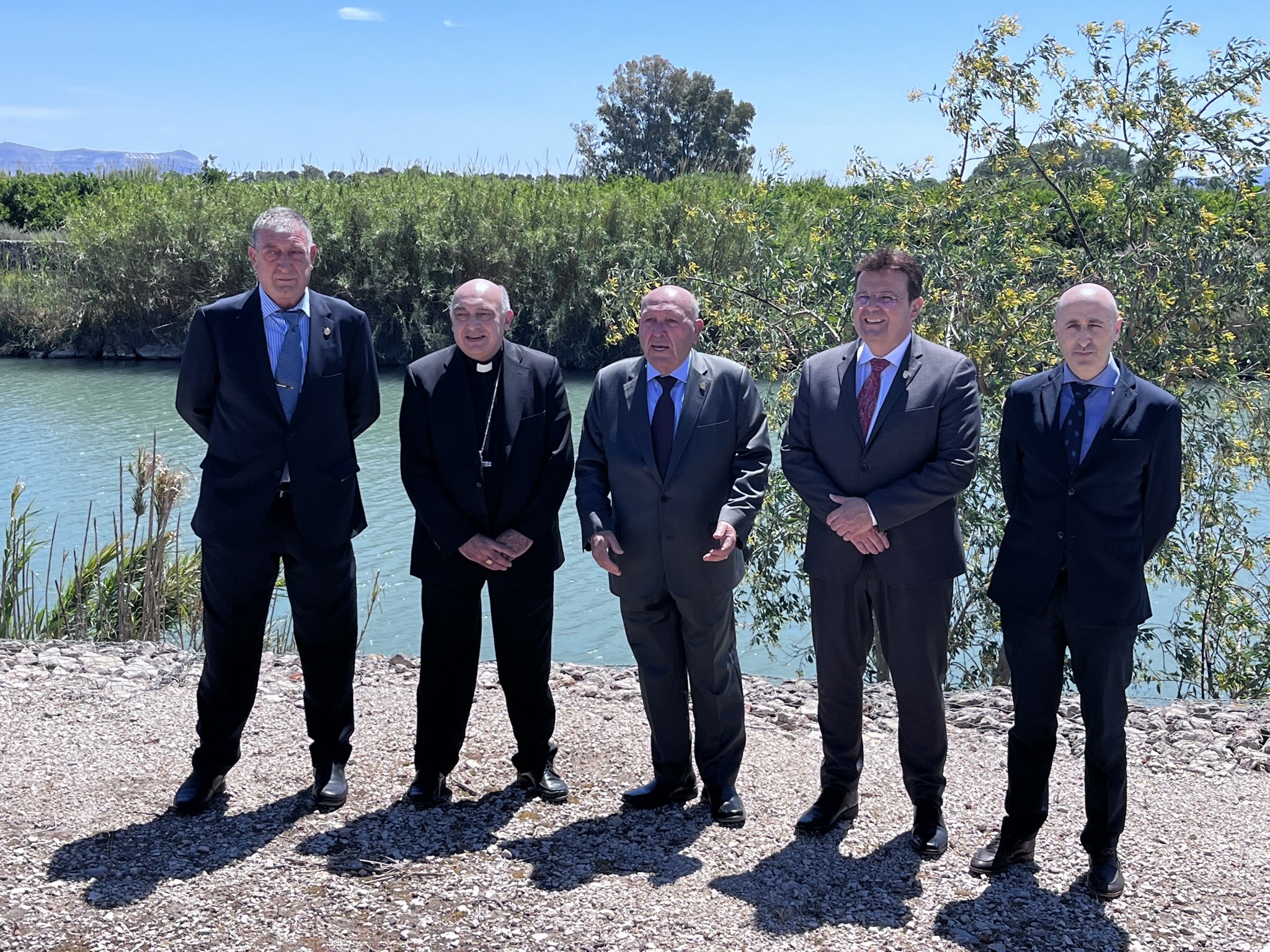 L’acte va començar al costat de la ria dels Canos amb les paraules del President José Pascual Fortea, que manifestava que, malgrat la sequera declarada en tot el país, estem en una zona, en la qual, de moment, tenim l’aigua garantida per a enguany. El President va aprofitar per a explicar al Sr. Arquebisbe, la dinàmica de les aigües, detalls del curs fluvial i el desenvolupament d’horts i arrossars mitjançant les séquies Major, Sequieta Nova i de Múzquiz.