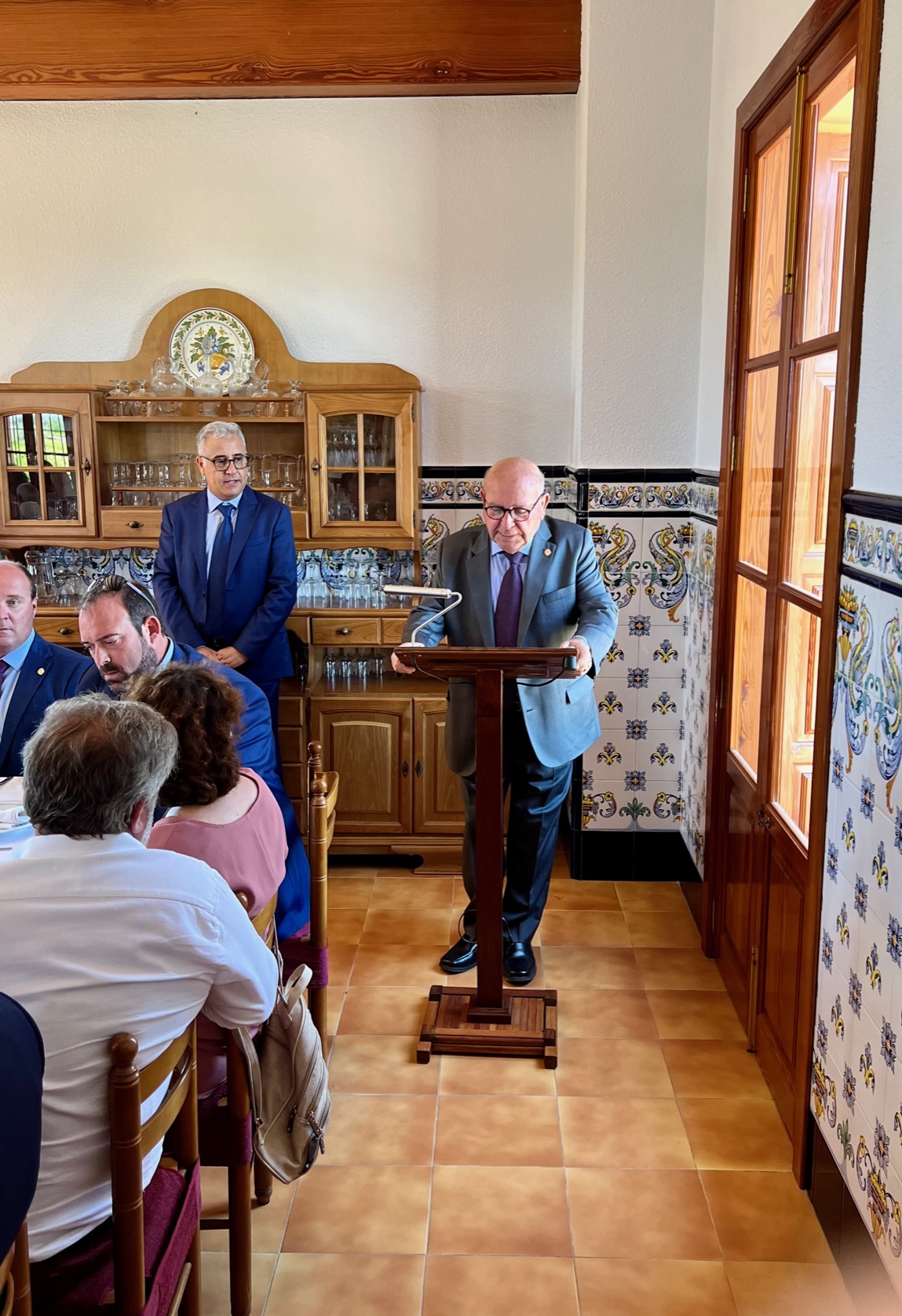 En el saló de la Casa dels Canos, va tornar a intervindre el President per a agrair la presència de les autoritats allí reunides. Va recordar en el seu discurs als treballadors temporers que venien a Sueca a la plantà, cria i vereda de l’arròs, molts dels quals provenien de la Vall d ’Albaida, en concret de Quatretonda, on va nàixer del Sr. Arquebisbe. També ser va referir a la simbologia de l’aigua tant en l’agricultura, com en la litúrgia catòlica. Va recordar també que enguany es compleix el centenari de la coronació de la Verge dels Desemparats, comentant unes curiositats del “València Canta” del Mestre Serrà amb lletra de Mariano Serrano i encarregat per Pedro Juan Serrano president de la diputació en aquella època. A més, era alcalde de València un altre suecà, Juan Artal, i per això es va fer popular la frase de “València canta, sí, però Sueca mana”.