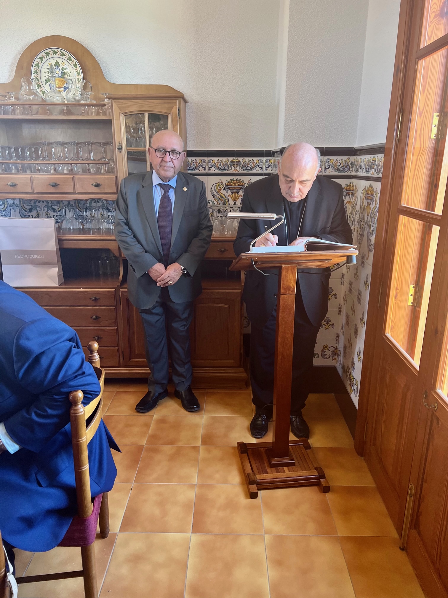 L’Arquebisbe signant al Llibre d’Or de la Comunitat.